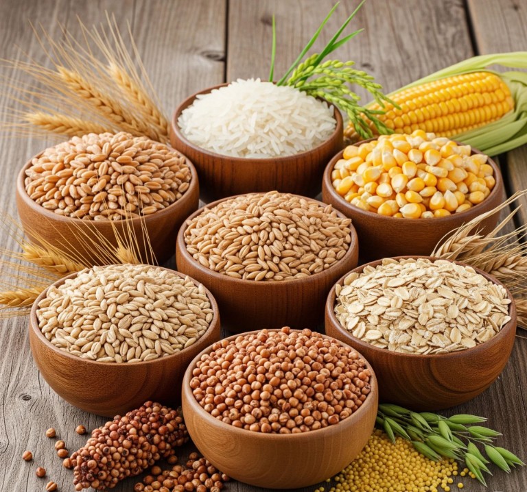 Cereals and grains are edible seeds from cultivated grasses (family Poaceae), serving as the world’s primary staple food and energy source due to high carbohydrate content. Major types include wheat, rice, maize, oats, and millet, which are rich in fiber, vitamins, and minerals.
